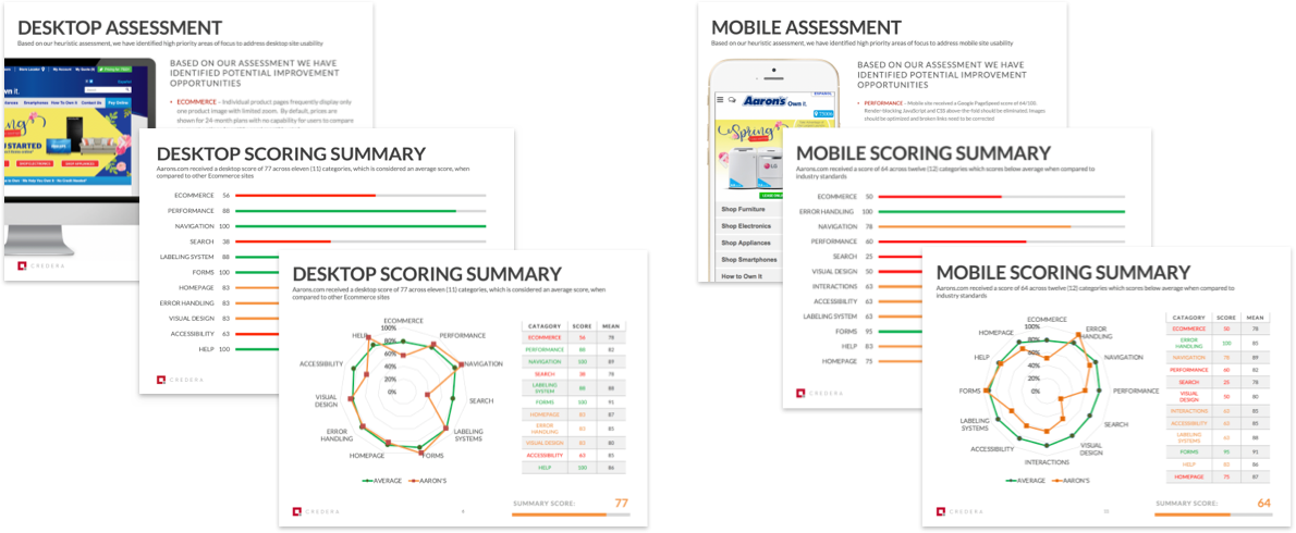 Conducted UX diagnostic of Aaron’s desktop and mobile site to uncover usability issues, which I indexed by severity and frequency