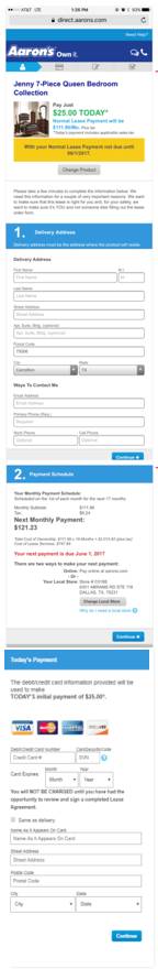 Leverages findings from competitive research to articulate Aaron’s value proposition and make users feel more confident leasing-to-own online