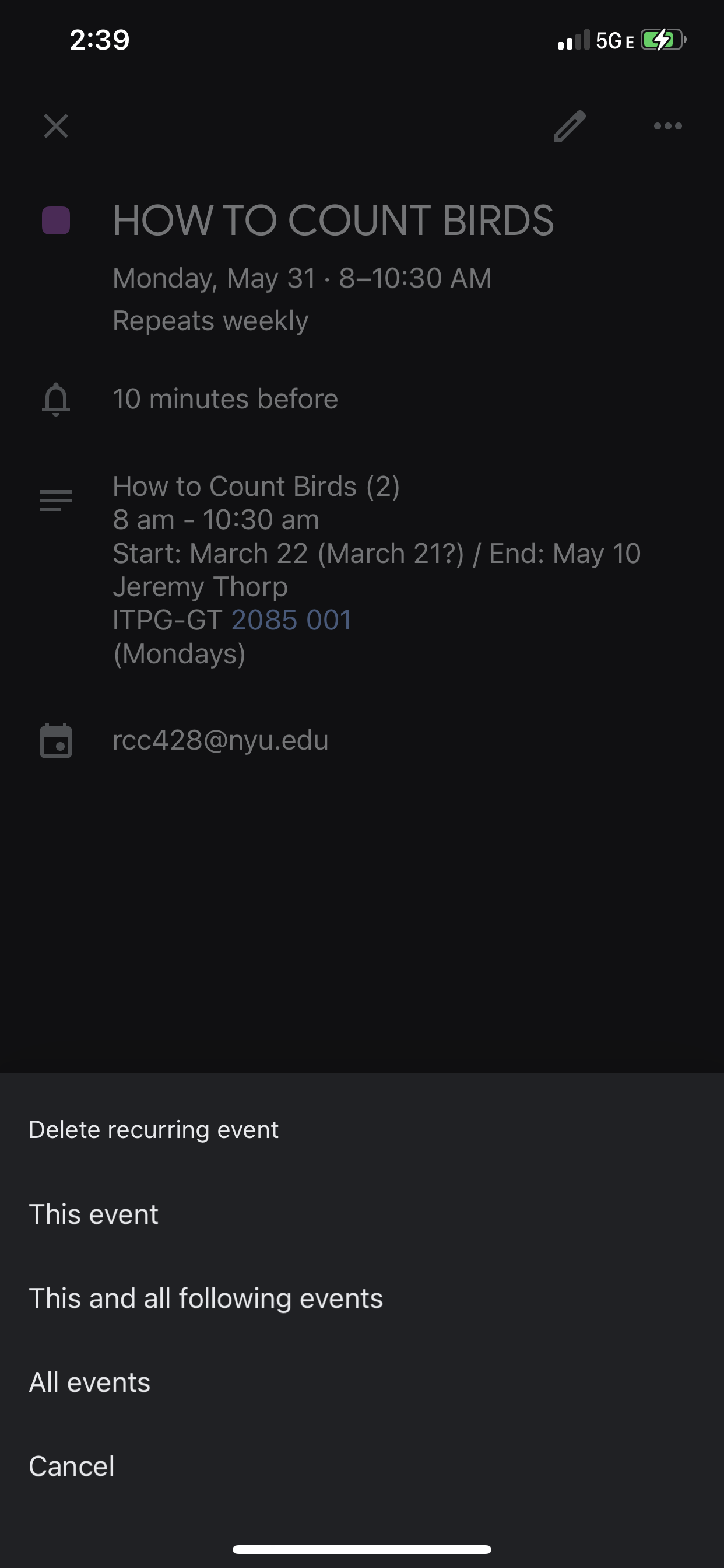 Every time I click ‘Delete this event’, I get this stressful pop-up message that makes me think I’m about to delete ALL the events on my calendar. Also, WHAT IS THE DIFFERENCE between the 2nd and 3rd options??